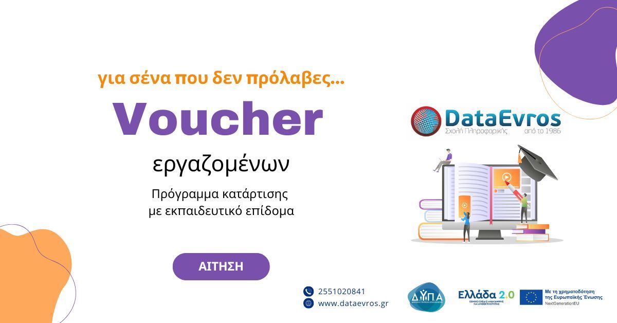 Η σχολή πληροφορικής DataEvros λειτουργεί από το 1986 στην Αλεξανδρούπολη στην οδό 40 Εκκλησιών 27 παρέχοντας υπηρεσίες εκπαίδευσης στον τομέα της πληροφορικής.